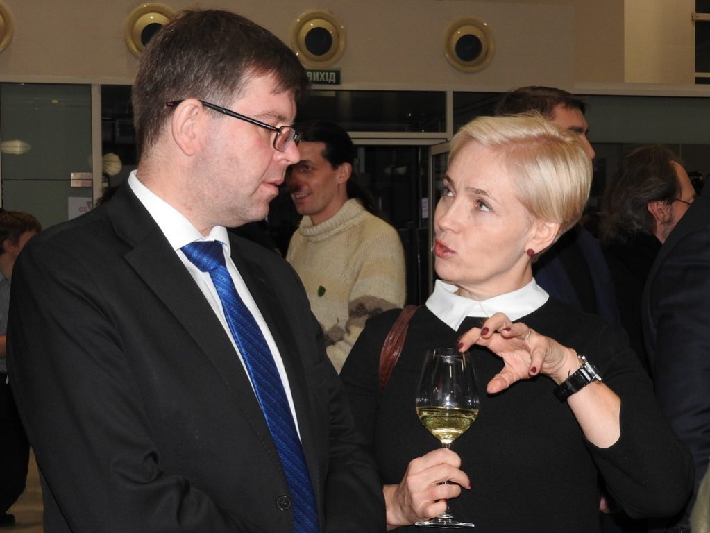 Marius Janukonis, Ambassador of the Republic of Lithuania to Ukraine: "I'm still considering [purchase of an icon]. But we made two exhibitions in the embassy – this year and last year – so we know very well these works. Those wonderful icons were bought by both staff of the embassy and people who attended our events. Buying the icons means combining assistance with purchase of pieces of art. It is both a very nice and great humanitarian idea and also beautiful pictures. That is, there are two aspects, humanitarian and artistic, that match very well in this project." Ann-Kristin Bjergene, Deputy Director of the NATO Liaison Office in Ukraine: "I'm very happy with my purchase. Why did I buy the icon? I wanted to help and also I think it's a very nice piece of art. It's marvelous how you make something evil into something beautiful, and this is exactly what has been happening here: take a piece of something that is completely broken and heal it again. And that's the idea of the medical initiative and also the idea of the art project, as far as I can understand"[/caption]