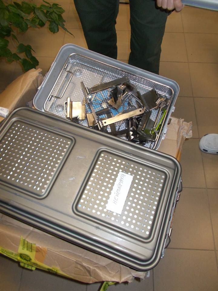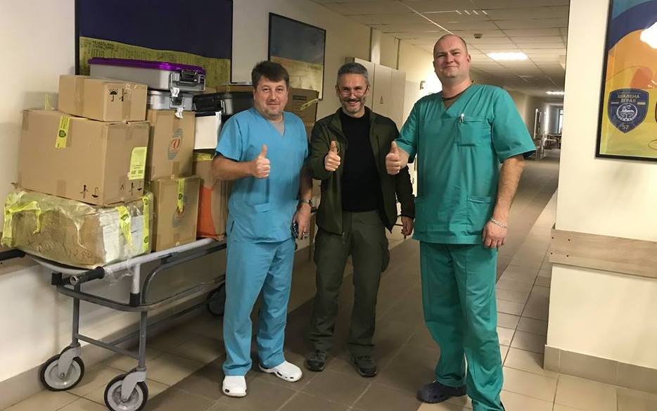 Yesterday, the Supervisory Board chairman of the Pirogov First Volunteer Mobile Hospital, Gennadiy Druzenko, brought a parcel of surgical tools, received from one of the United States' Ukrainian communities, to the Oblast Clinical Hospital for War Veterans in Kropyvnytsky. The PFVMH leader also fetched along some medicines from the mobile hospital's stock in Kyiv.