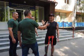 On Friday, Sep. 13, members of a medical evacuation crew of the Pirogov First Volunteer Mobile Hospital accompanied by a few media representatives came to the Irpin Military Hospital near Kyiv to see Dmytro Herzhan. Dmytro, a soldier of the 74th Scout Battalion, got a severe injury during the Security Service of Ukraine operation bringing pro-Russia militant Volodymyr Tsemakh, allegedly involved in MH17 downing, to the government-controlled territory and was evacuated by four PFVMH medics from Vinnytsya. They include driver/orderly Andriy Sirak, paramedic Serhiy Poberezhny, orderly Andriy Nechyporuk, and orderly Stepan Sirak.
