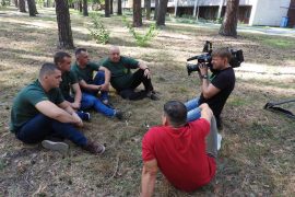 “We came to see our brother in arms, nom de guerre Tryton,” Andriy Sirak said. “Not long ago, during the operation of capturing Tsemakh and bringing him to the government-controlled territory, there happened a clash. These scout guys needed help. We were in the place and time when it was needed.”