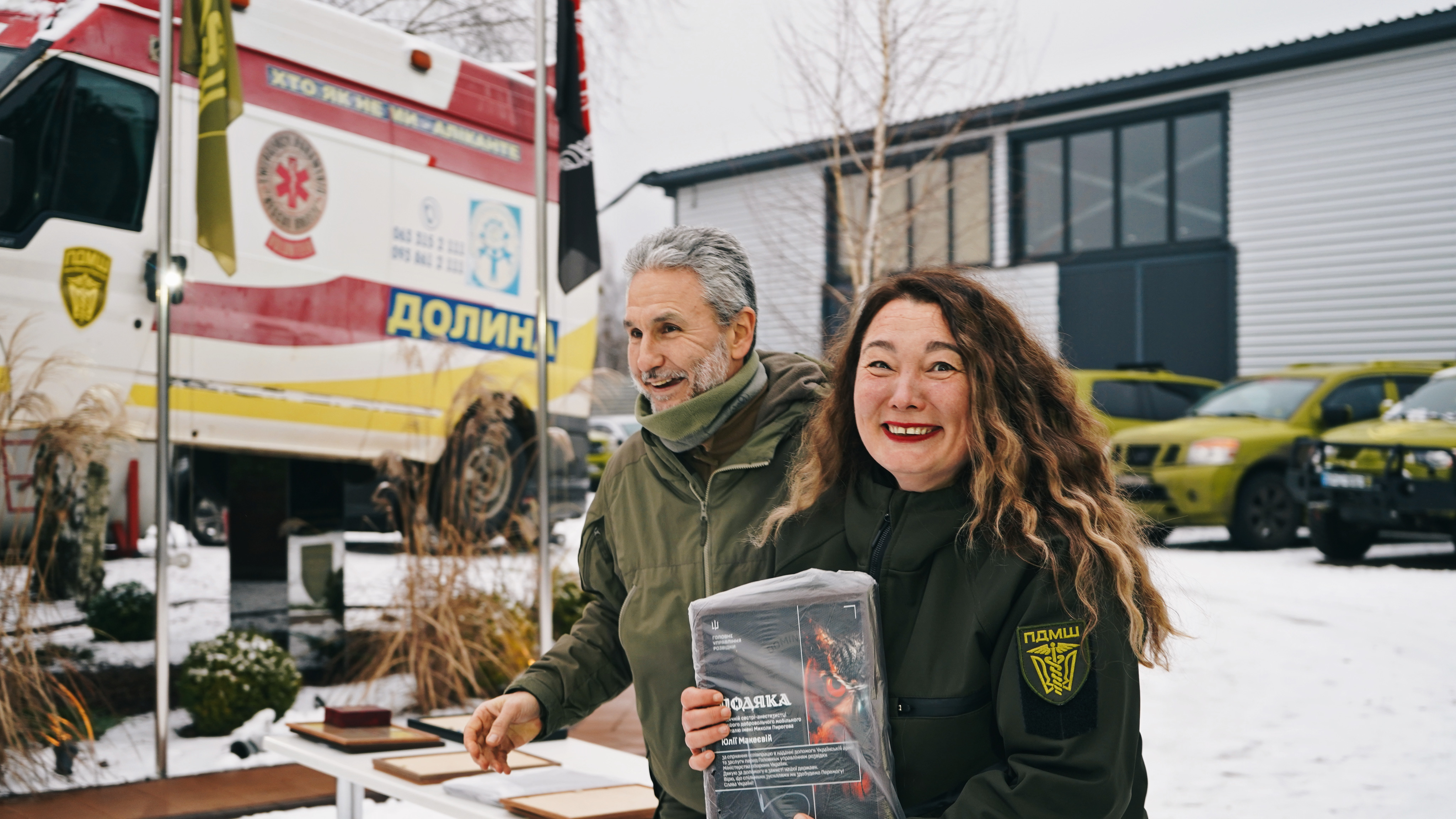До нас приїхали друзі та партнери, щоб привітати з річницею. Щиро вдячні за вашу присутність, теплі слова й подарунки. Деякі з них уже зовсім скоро працюватимуть на фронті — захищатимуть наші екіпажі та допомагатимуть рятувати життя.