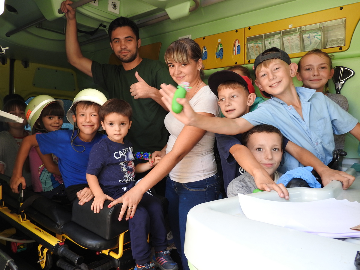 Присутність мобільного шпиталю в Іванківцях також була із захватом сприйнята місцевими дітлахами, для яких приміряння бронежилету і катання на швидких було неабиякою атракцією.