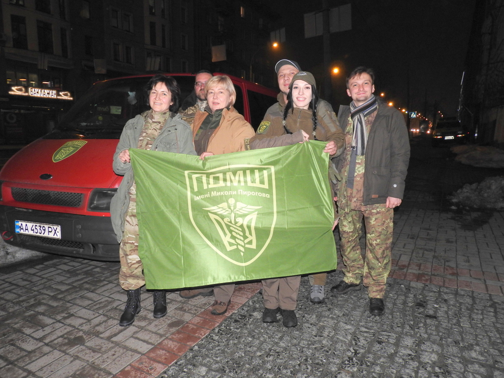 Учора ввечері разом з Вікторією та віце-президентом ПДМШ з питань логістики Ігорем Буйволом з Києва на схід виїхали кардіолог Ірина Коцюбинська, травматолог Олексій Голубенко, парамедик Олена Мосійчук і капелан ЗСУ Максим Козачина, який попросився в команду санітаром, але, за словами Крамаренко, "буде непогано, якщо попрацює як психолог". На місці до них приєднався водій швидкої "Айболить" і голова БФ "Патріоти України" Сергій Кисельов, а також масажист Микола Дорофєєв – учень знаменитого Миколи Касьяна. Очікується, що завтра команда поповниться лікарем УЗД.