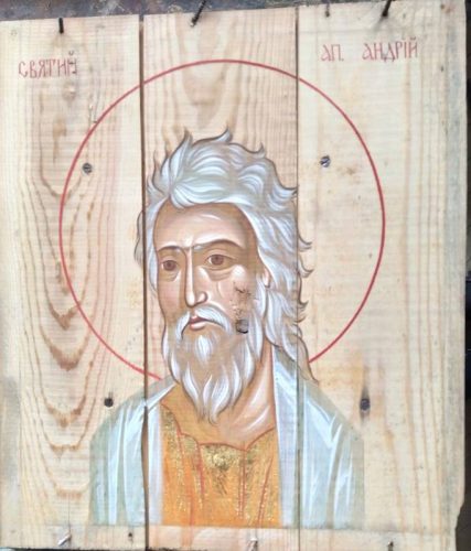 Учора в Стамбулі Вселенський Патріарх Варфоломій І на свій 80-й день народження отримав у подарунок від української делегації ікону Святого апостола Андрія Первозваного, написану на денці ящика з-під набоїв до АКМ. Автор роботи – київський художник Олександр Клименко.