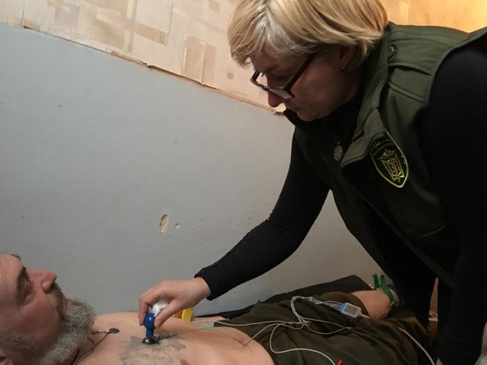 Після заповнення картки робили кардіограму. Потім бійця оглядав лікар-ортопед, після чого бажаючих приймав лікар-масажист. За цей час Ірина розшифровувала кардіограму. Також, якщо була потреба, вимірювали цукор. А взагалі я залишила їм тести на цукор, бо якби ми все це робили на місці, то були б там ще 10 днів.