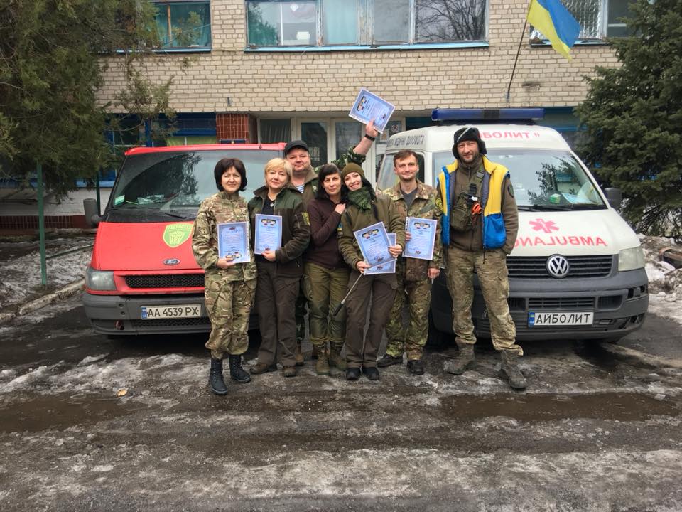 Ініціатором цього «медичного десанту» ПДМШ – першого до воїнів-добровольців – стала заступник головного лікаря з питань медсестринства Київської міської клінічної лікарні № 2 «Опіковий центр» Вікторія Крамаренко. Разом з нею до цієї команди увійшли віце-президент ПДМШ з питань логістики Ігор Буйвол, кардіолог Ірина Коцюбинська, травматолог Олексій Голубенко, парамедик Олена Мосійчук, капелан ЗСУ Максим Козачина, водій швидкої «Айболить» і голова БФ «Патріоти України» Сергій Кисельов і масажист Микола Дорофєєв.