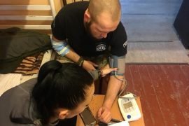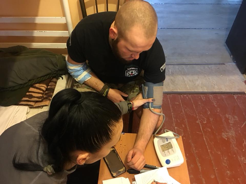 Перше що ми робили під час огляду – заповнення особистої медичної картки, чого раніше взагалі не було. Є бійці, є проблеми зі здоров’ям, але єдине, що вони мають – окремі виписки при зверненні. Треба ж враховувати, що військові шпиталі не беруть на облік бійців-добровольців. Фактично їм нема куди звертатися крім як до лікарів-добровольців або «Госпітальєрів». Але «Госпітальєри» складаються в основному з тактичних медиків, а професійний медик є лише в лікарні. До лікарні доїхати важко, не завжди виходить. Тому якихось медичних підтверджень накопичення їхніх хвороб або якоїсь динаміки захворювань ніхто не мав. Тепер ми завели їм ці картки, і до цих карток начмед, тактичний медик, відповідальний за конкретний підрозділ, будуть вносити всі поранення, всі їхні захворювання. Таким чином, коли людина вже демобілізується, то матиме свою особисту картку, де є зібраний нами аналіз, виміряний вміст цукру, записана група крові, описані всі бойові поранення тощо. Ми залишили в підрозділах тести на ВІЛ/СНІД – це дуже важливо, і в картці буде позначений цей маркер. Буде стояти відмітка про тест на гепатит. І все інше, що ми писали там: наприклад, комусь треба пройти МРТ, комусь – УЗД шлунку. Це будуть робити і підшивати до картки.