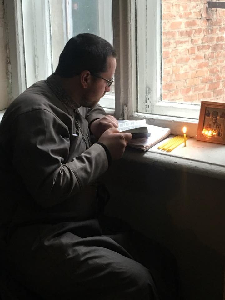 Батюшка постійно виконував свою роботу: ходив до бійців, якщо хтось хотів з ним поспілкуватись, сповідатись. Решту часу або допомагав нам – щось потримати, щось записати – або молився.