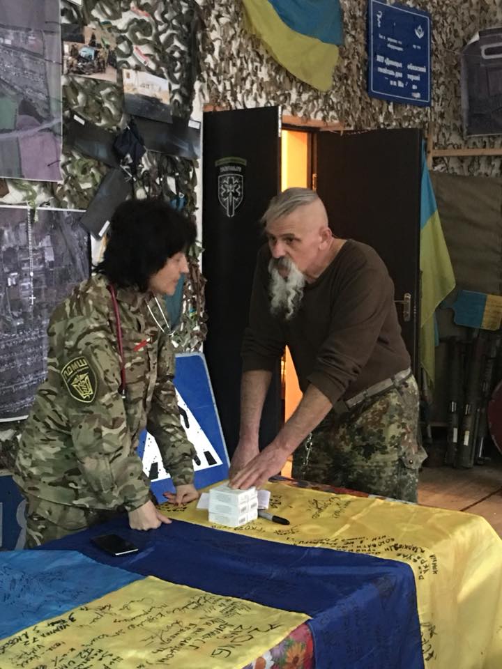 Ідея поїхати саме до добровольців уперше виникла у мене ще у травні минулого року, коли я побувала в розташуванні ДУК «Правий сектор». Тоді я сказала Сергію Кисельову: ось до кого треба їхати! Бо їм потрібна допомога, як нікому. Серед бійців були і молодь, і люди старшого віку. Хтось із кульовими пораненнями, хтось із контузіями. Я їх ще спитала, чи є у них начмед? Кажуть, що немає. Давно вас перевіряли? Ще до війни – десь колись когось.