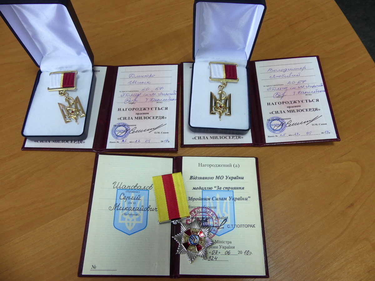 Вища громадська медична нагорода –знак народної пошани орден "Сила милосердя" був вручений Володимиру Любивому та Дмитру Шипіку, колишнім фельдшеру МНС та водію швидкої цього центру, які сьогодні за контрактом служать у Збройних Силах України. Фельдшер виїзної бригади Сергій Шаповалов отримав відзнаку МО України – медаль "За сприяння Збройним Силам України".