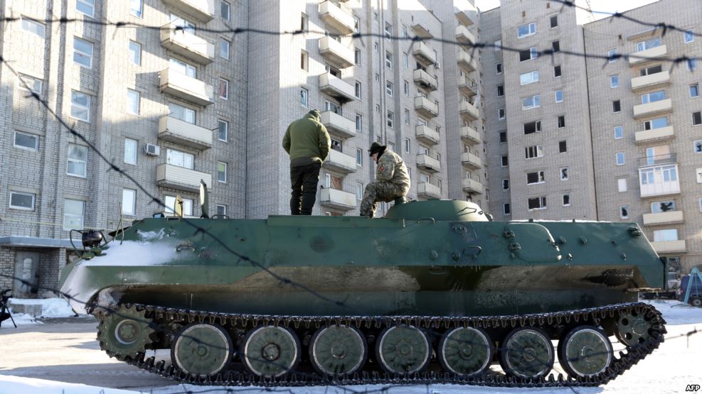 На фото вгорі: Українські медики стоять на бронетранспортері після того, як вони доправили поранених військовослужбовців до лікарні у підконтрольній Україні Авдіївці, що у Донецькій області. 30 січня 2017 року. (Джерело: Радіо Свобода)
