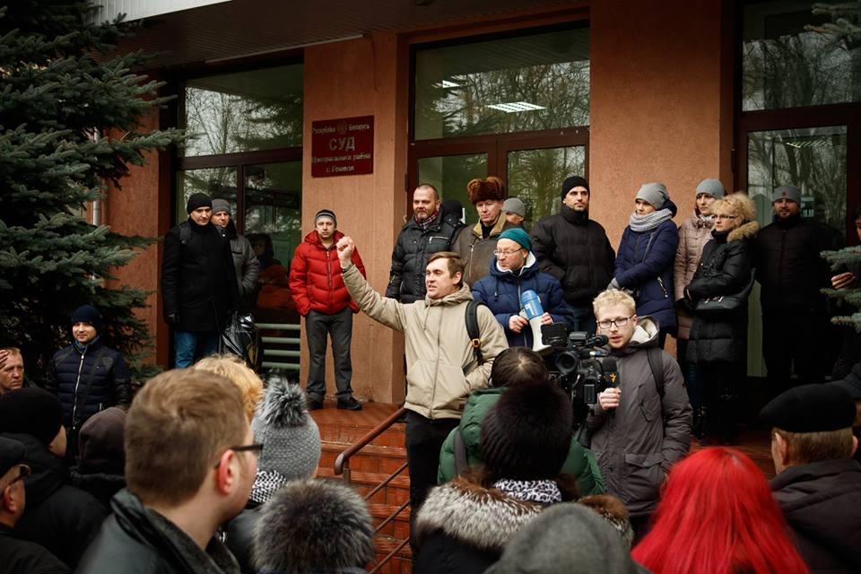 За словами Андрея, в той день у Гомелі проходив перший суд над одним з учасників "Маршу недармоїдів", на якому мало бути винесено рішення, що змінило б долю усіх "недармоїдів" у Білорусі. На суд прийшло близько 300 осіб, але в приміщенні суду помістилося лише 38. "Злочин" Андрея полягає в тому, що він, стоячи на сходинках, зачитував людям цитати з судового засідання, які йому передавали люди з залу!